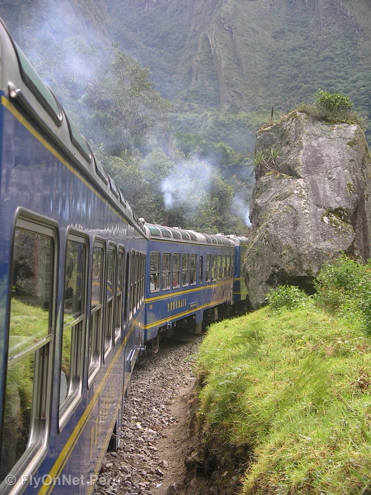 O trem é o meio mais popular e confortável para chegar a Machu Picchu. Duas companhias oferecem trajetos diários de Poroy (a 20 minutos de Cusco) ou Ollantaytambo (a 2 horas de Cusco) até Aguas Calientes. Vale lembrar que há muitos anos não há estação ferroviária em Cusco. As duas companhias são: